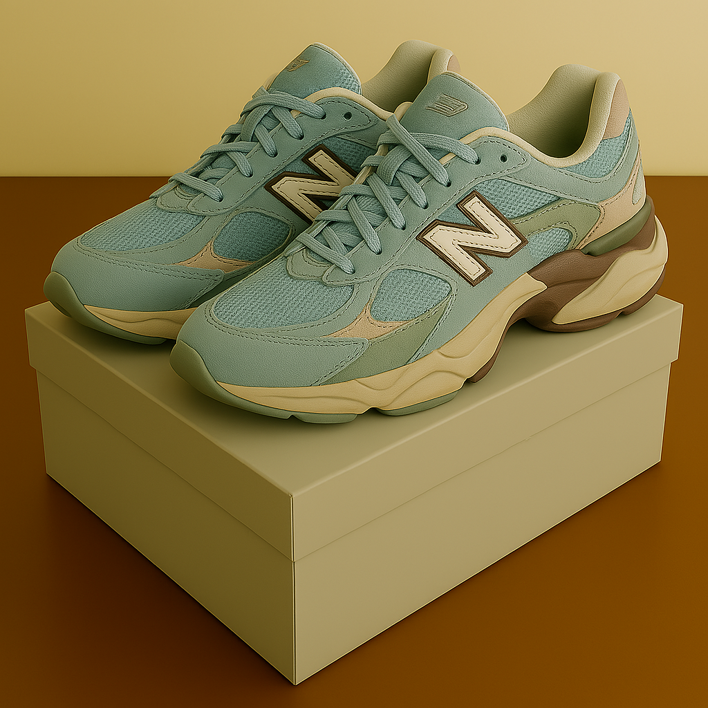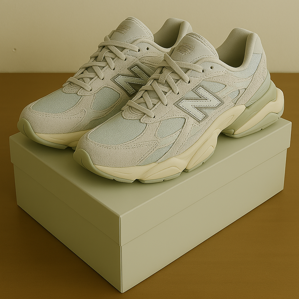 New Balance 9060 – Cream Mesh & Suede Sneakers | Chunky Sole with Light Green Accents