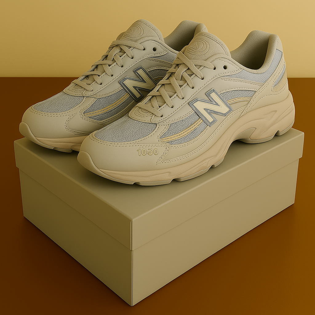New Balance 1050 – Beige Mesh & Leather Sneakers | Neutral Tones with “N” Logo & Casual Comfort