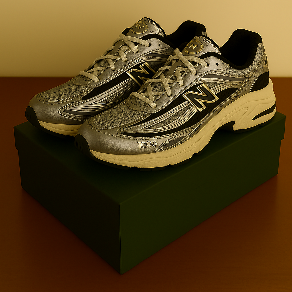 New Balance 1000 – Silver & Black Mesh Sneakers | Sleek Build with Bold “1000” Branding